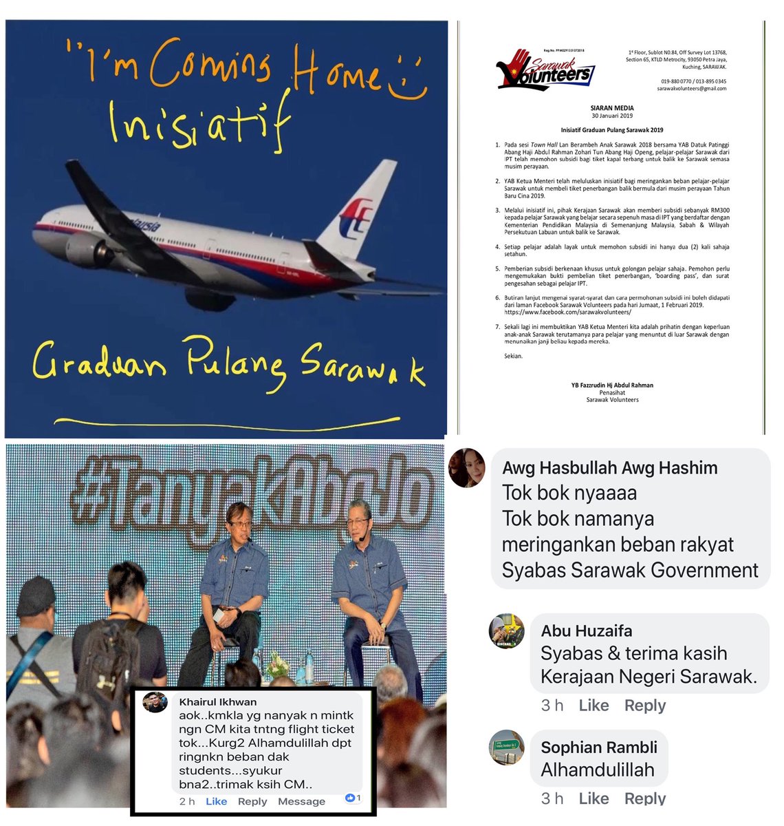 Subsidi tiket penerbangan bagi graduan pulang sarawak.